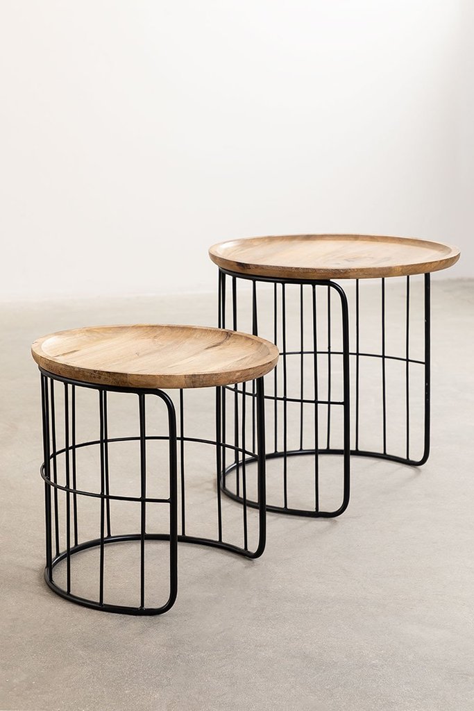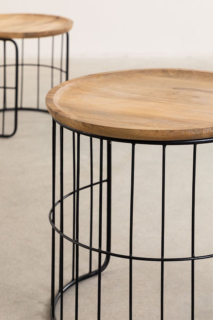 Mesas Nido en Madera Reciclada, toda una representación del estilo Vintage - Industrial. Un conjunto de dos piezas artesanales de diseño que fusionan a la perfección la calidez de la madera reciclada 100% natural y la resistencia del acero. Su fabricación artesanal y las marcas e irregularidades de la pintura las convierte en muebles únicos e inigualables que todo amante del interiorismo desearía tener. Unas mesas auxiliares de diseño con las que podrás aportar carácter e identidad a tus espacios. Gracias a sus dimensiones y a su ligereza, podrás integrarlas fácilmente en cualquier salón, despacho, hall o dormitorio.