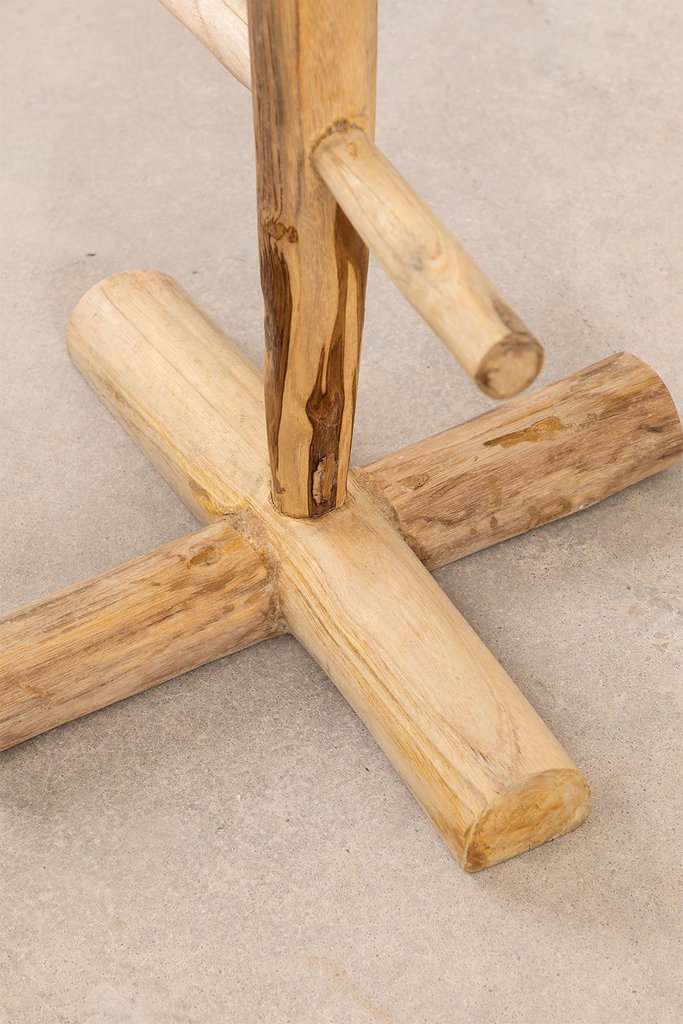 Perchero en Madera de Teca Narel. En su diseño, minimalista y sofisticado, dispone de diez perchas ubicadas a diferentes alturas para que todas tus prendas puedan colocarse sobre el sin que arrastren en el suelo. La base, en forma de cruz, le otorga estabilidad. Además, cumple una doble función ya que podrás decorar el rincón de tu recibidor o dormitorio mientras tiene tu ropa siempre recogida y a mano ¡Ya no hay excusa para tenerlo todo recogido!.